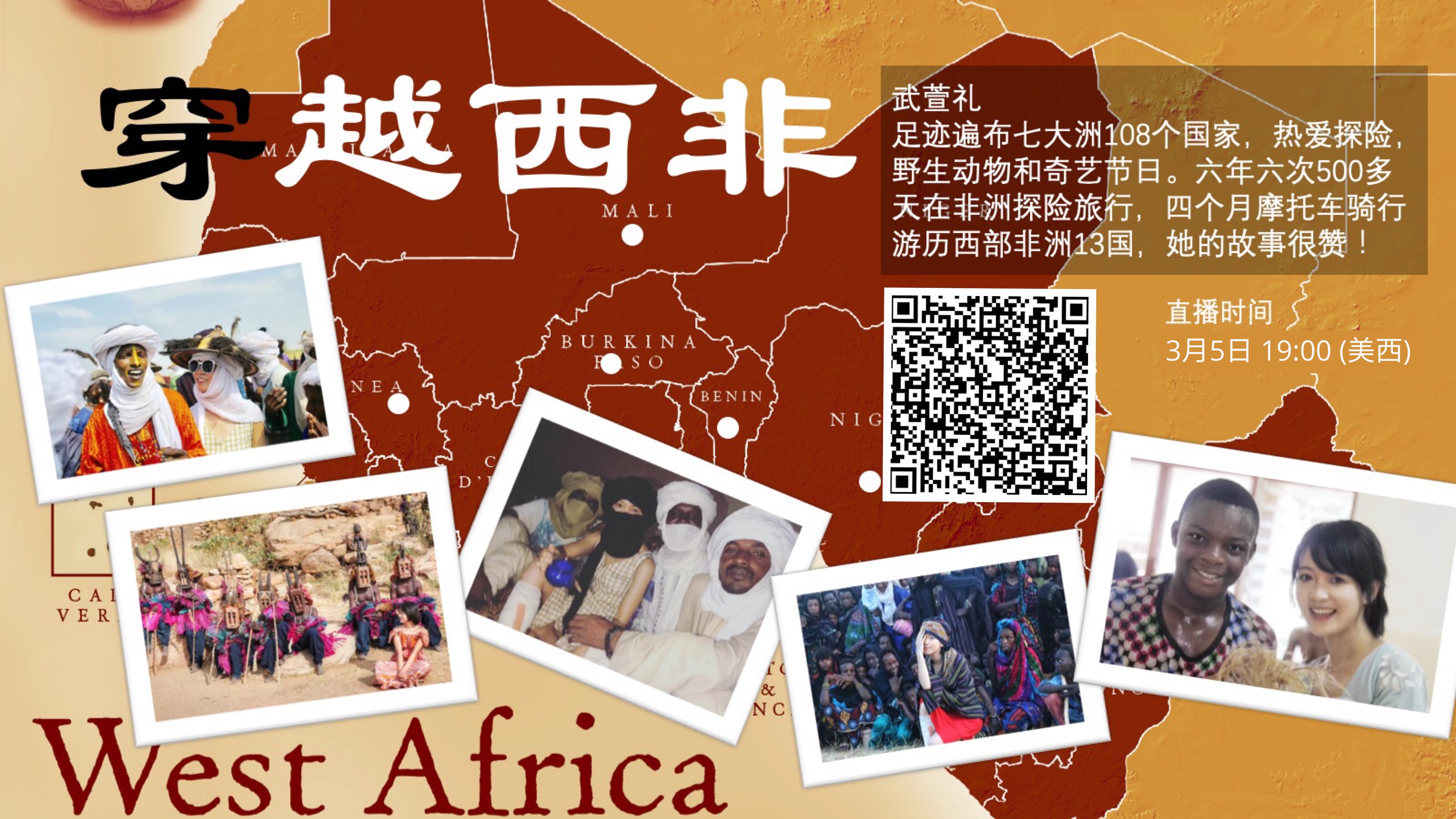 主讲人将分享她穿越西部非洲13个国家的经历,介绍西非独有的节日和文化。