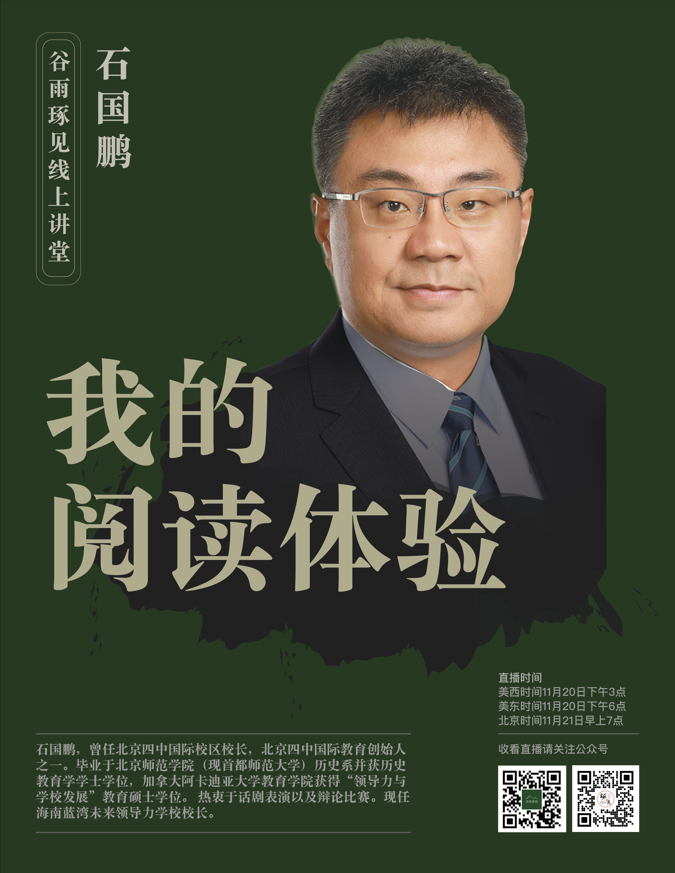 谷雨书苑2015年创立于旧金山湾区,致力于促进中美文化交流。迄今为止, 谷雨在旧金山湾区,洛杉矶,北京,上海等地举办了400场的线下文化交流分享活动。邀请为谷雨做过分享的嘉宾包括,知名导演贾樟柯,“最牛历史老师”袁腾飞,北京四中国际教育创始人石国鹏,知名学者秦晖,知名作家、记者吴思,历史学家阮大仁,人大教授京城名嘴周孝正,奇葩说冠军邱晨,知名辩手艾力等。谷雨书苑接下来还会邀请更多文化圈的名人大咖,知名学者和大家见面,欢迎订阅谷雨,获取更多活动通知和精彩的分享。