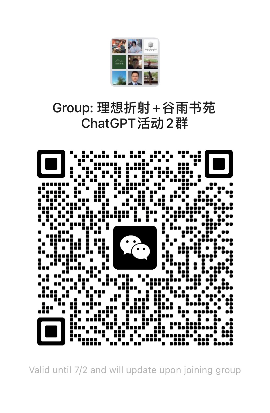 二零二三年五到六月份,谷雨书苑联合理想折射,推出ChatGPT系列分享活动。活动分四期进行:
