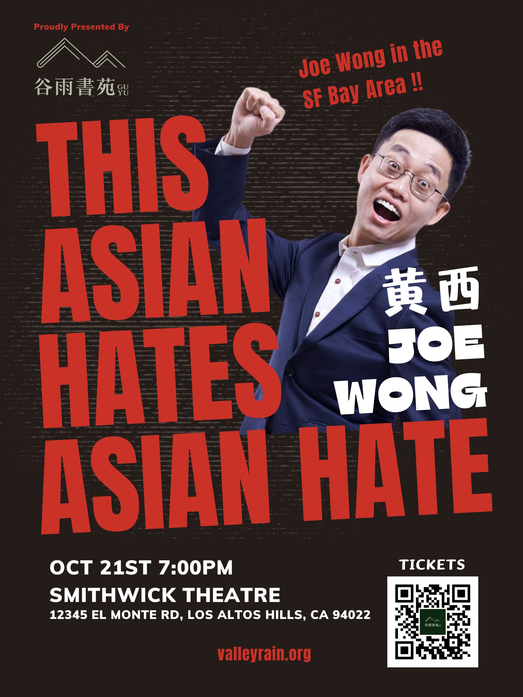 Joe Wong黄西 Talk show–This Asian Hates Asian Hate Join us for an unforgettable evening with Joe Wong黄西, the renowned comedian and talk show host, as he brings his signature humor and wit to the stage. This event, titled “This Asian Hates Asian Hate,” promises to be a thought-provoking and entertaining exploration of the Asian American experience.